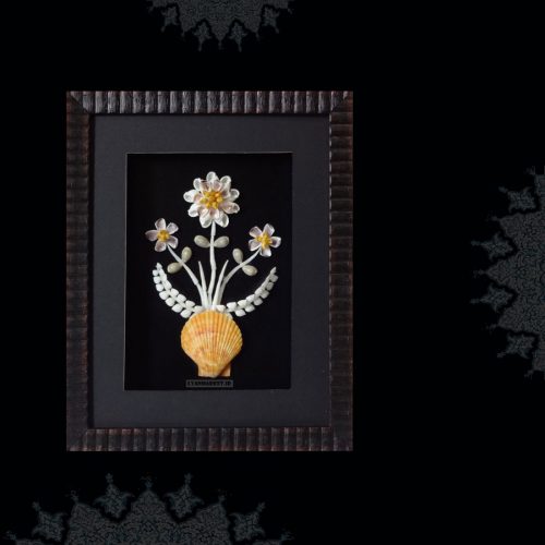 از صدف های خلیج همیشگی فارس و صدف های اقیانوس آرام و ساخته شده در رنگ های متنوع و نیز بدون رنگ یعنی رنگ خود صدف و بصورت ساده و تراش خورده و کار شده بروی چوب سه لایه مشکی و ماسه دریایی می باشد. حداقل سفارش 20 عدد می باشد