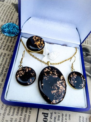ست خیلی خاص رزین که خیلی پرطرفداره و با ورق مسی و ترکیب با رنگ مشکی ساخته شده.یه کار کاملا دستساز و پر از زحمت.